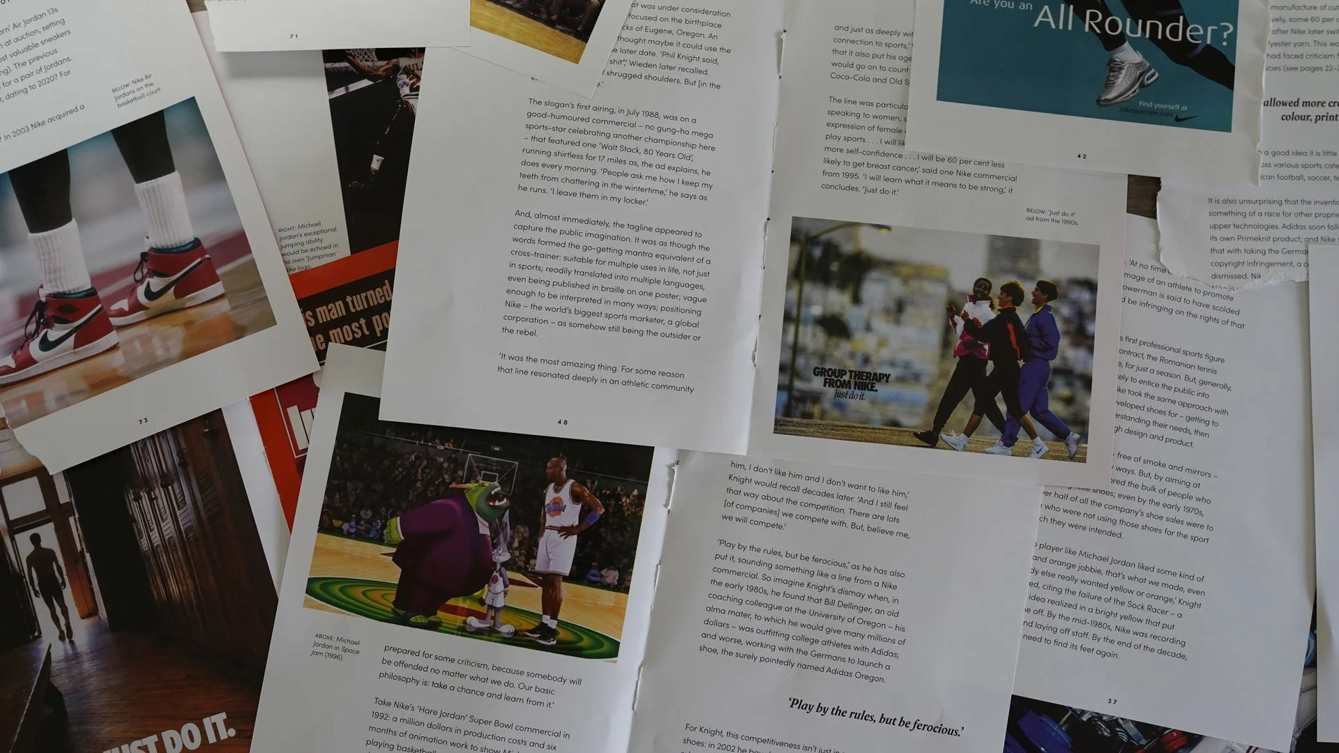 A personal project exploring the fusion of print and digital design. The base texture of the swoosh is formed by a collage of Nike-related pages. This texture later animates into a more dynamic look to complement Nike’s sporty look.